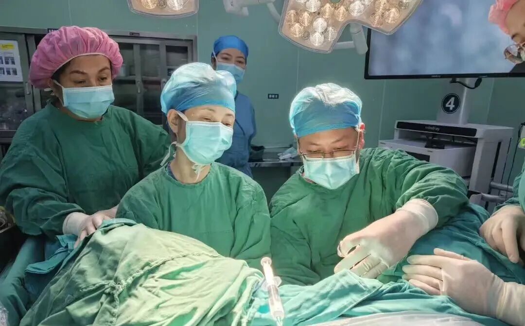 在进行手术时,陈淑琴主要示范了盆底脱垂手术以及腹腔镜下子宫肌瘤剥除术,精准的操作、严谨的态度,让一同手术的医护称赞不已。“来,看,你们注意这里……”陈淑琴时不时“划重点”,引导教学,双方在互动中增进学习热情。
